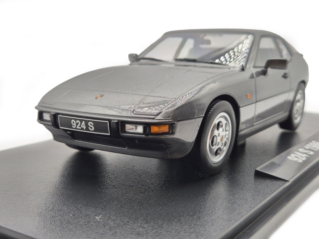 Porsche 924S (1986) reprezintă unul dintre cele mai apreciate coupe-uri sportive ale anilor ’80, combinând liniile curate tipice Porsche cu o experiență de condus agilă și precisă. Vopseaua gri metalizat oferă modelului o eleganță aparte, evidențiind capota lungă, silueta aerodinamică și designul clasic al seriei 924. În realitate, 924S a fost o versiune îmbunătățită, echipată cu motorul și tehnologia modelului 944, transformând modelul compact într-un adevărat coupe sportiv.