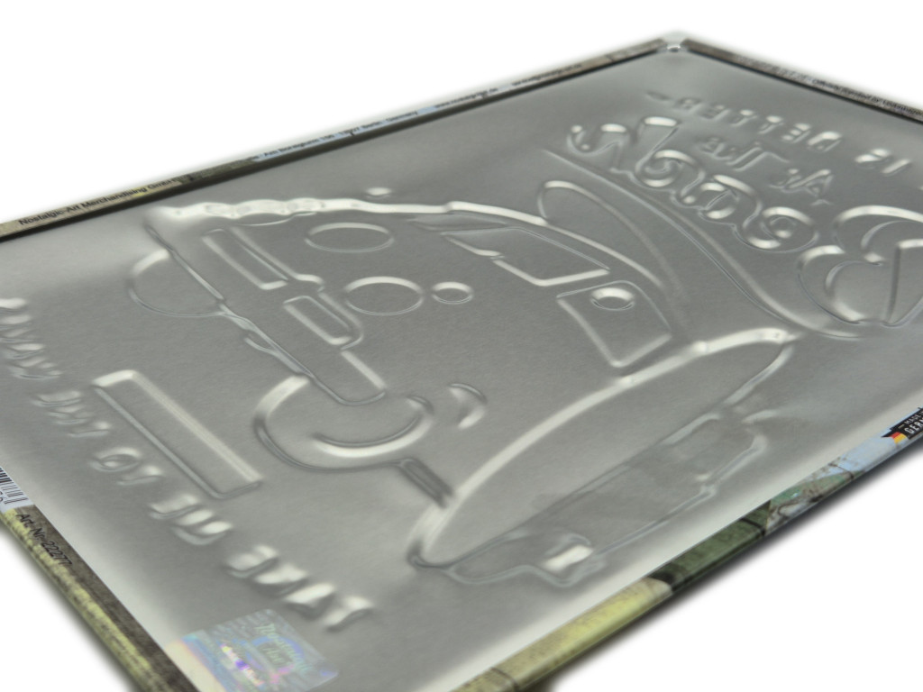 Placa este realizată din metal embosat de calitate premium, fiind o piesă decorativă rezistentă și elegantă. Produs fabricat în Germania, cu licență oficială și hologramă, garantând autenticitatea și durabilitatea produsului. Dimensiunea de 20x30 cm este ideală pentru perete sau pentru a fi expusă pe o poliță, într-un birou, garaj sau orice spațiu tematic.