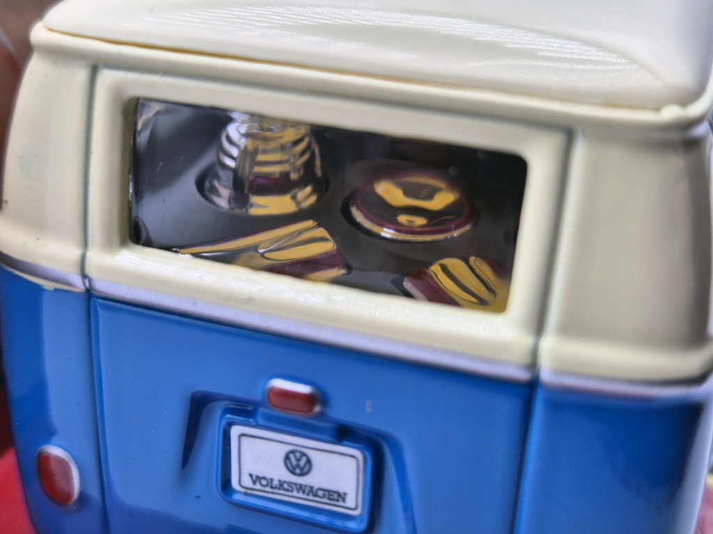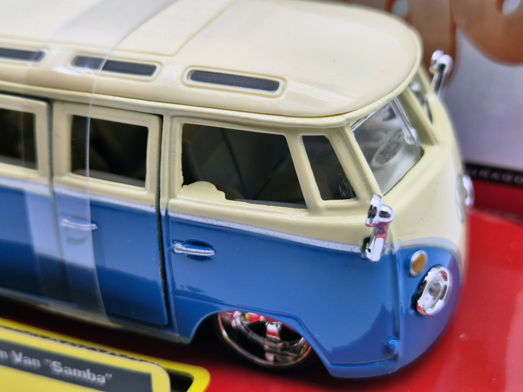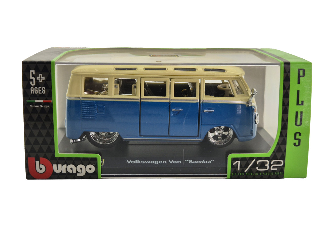 La scara 1:32, modelul oferă un echilibru excelent între detalii și dimensiune. Este suficient de mare pentru a evidenția forma caroseriei și detaliile vizuale, dar și ușor de expus într-o vitrină sau pe raft. Finisajele sunt atent realizate, vopseaua este curată, iar proporțiile respectă fidel designul original al Volkswagen Transporter Samba. Bburago este cunoscut pentru modelele sale accesibile, dar bine realizate, potrivite atât pentru colecționari, cât și pentru pasionații de automobile clasice.