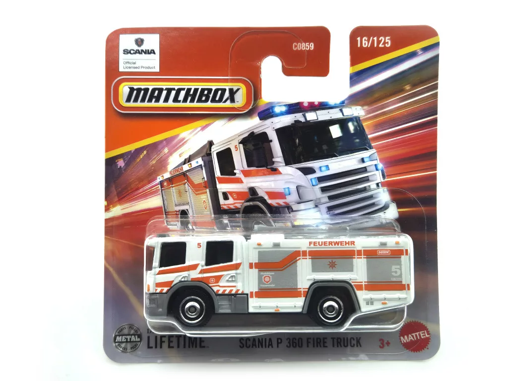 Camion de pompieri Scania P 360 - 16/125 - blister - Matchbox - 1:64 1/64 mașinuță (m02897)