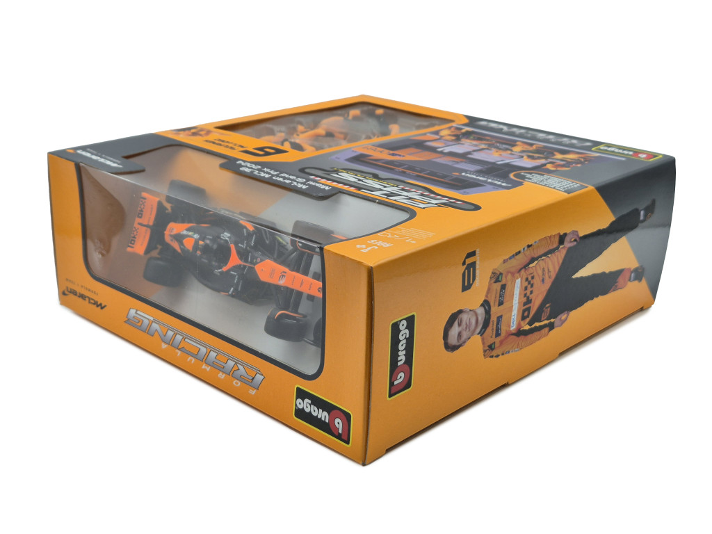 McLaren Pit Stop - dioramă box - MCL38 F1 #81 (2024) - Oscar Piastri - cu mecanici - Bburago - 1:43 1/43 mașinuță de colecție (m03200)