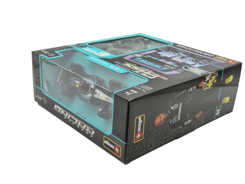 Mercedes Pit Stop - dioramă box - W14 EQ Performance F1 #44 (2023) - Lewis Hamilton - cu mecanici - Bburago - 1:43 1/43 mașinuță de colecție (m03201)