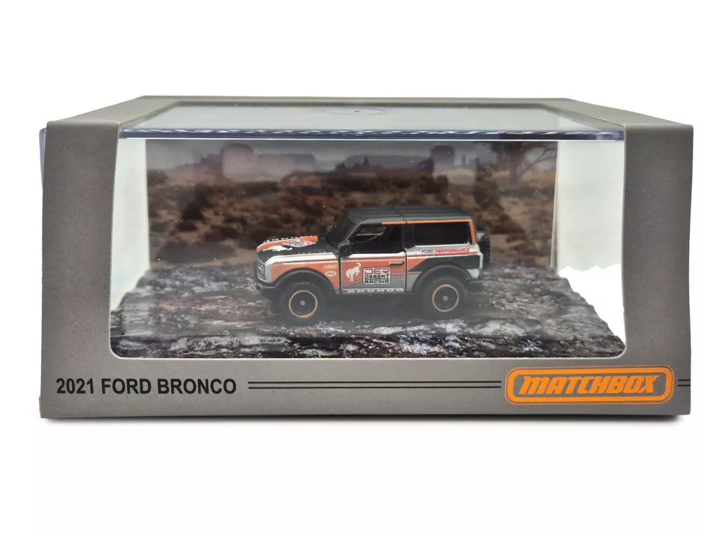 Acest Ford Bronco 2021 este alegerea ideală pentru iubitorii de SUV-uri americane, off-road modern sau pentru cei care doresc o piesă exclusivă Matchbox în colecția lor. Se potrivește perfect într-o vitrină, într-un dioramă sau ca un cadou special pentru un pasionat auto. Detaliile bine lucrate oferă o fidelitate surprinzătoare pentru scara 1:64 – un adevărat must-have pentru colecționari.