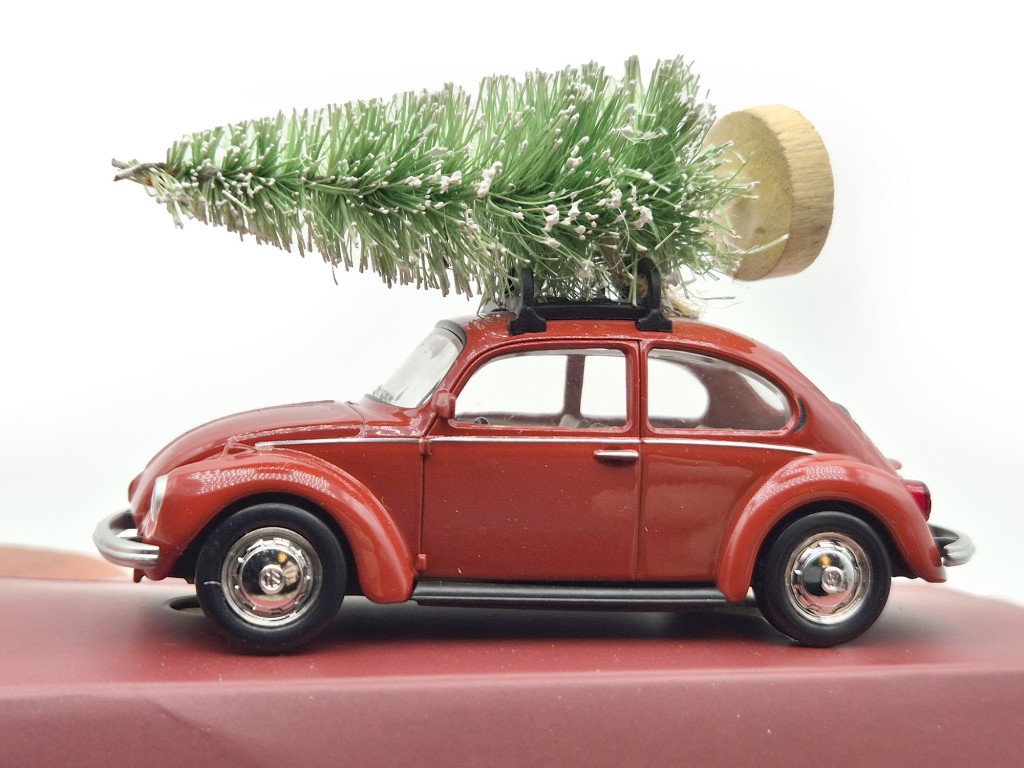Volkswagen VW Beetle (Broscuță) – cu brad – ediție de Crăciun în cutie decorativă – Norev – 1:43 1/43 model auto (m03364)