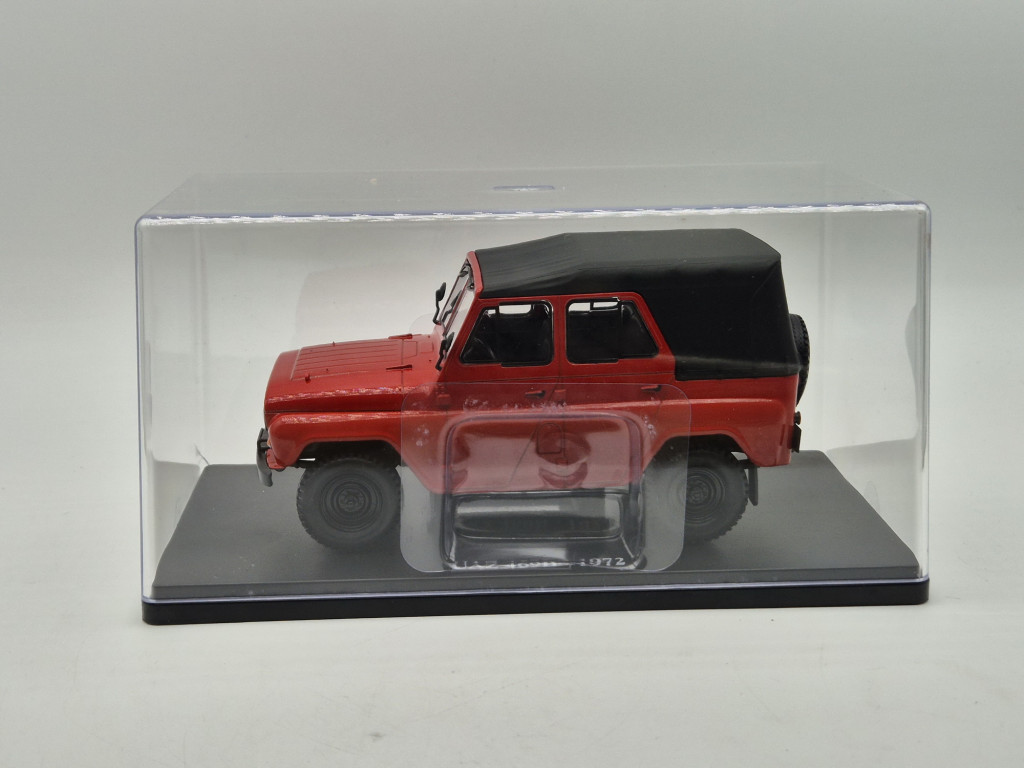 Model foarte detaliat, cu realizare realistă. Nu se deschide. Produs nou, cu vitrină (aproape toate vitrinele prezintă defecte!). UAZ 469B este unul dintre cele mai cunoscute vehicule de teren ale industriei auto sovietice, devenit legendar datorită robusteții extreme și tehnicii sale simple. Din anii 1970, a fost utilizat atât în serviciu militar, cât și civil, în numeroase regiuni ale lumii. Modelul Edicola la scara 1:24 este o piesă mare și plină de caracter, care redă fidel aspectul auster și militar al UAZ-ului original.