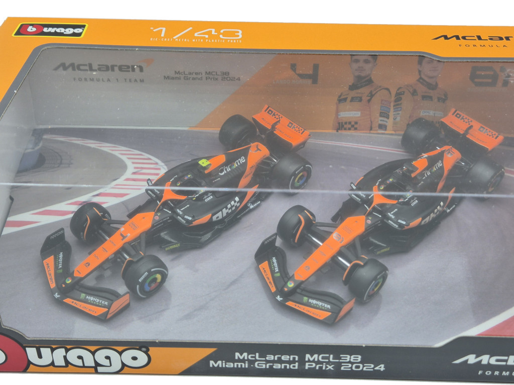 Setul Bburago la scară 1:43, tip dioramă cu 2 modele, oferă un nivel ridicat de realism și valoare de colecție. Detaliile caroseriei, grafica oficială McLaren și prezentarea comună a celor două monoposturi creează o piesă spectaculoasă. Ideal pentru fanii Formulei 1, colecționari și susținătorii echipei McLaren.