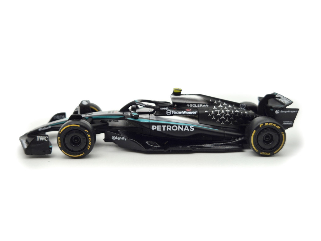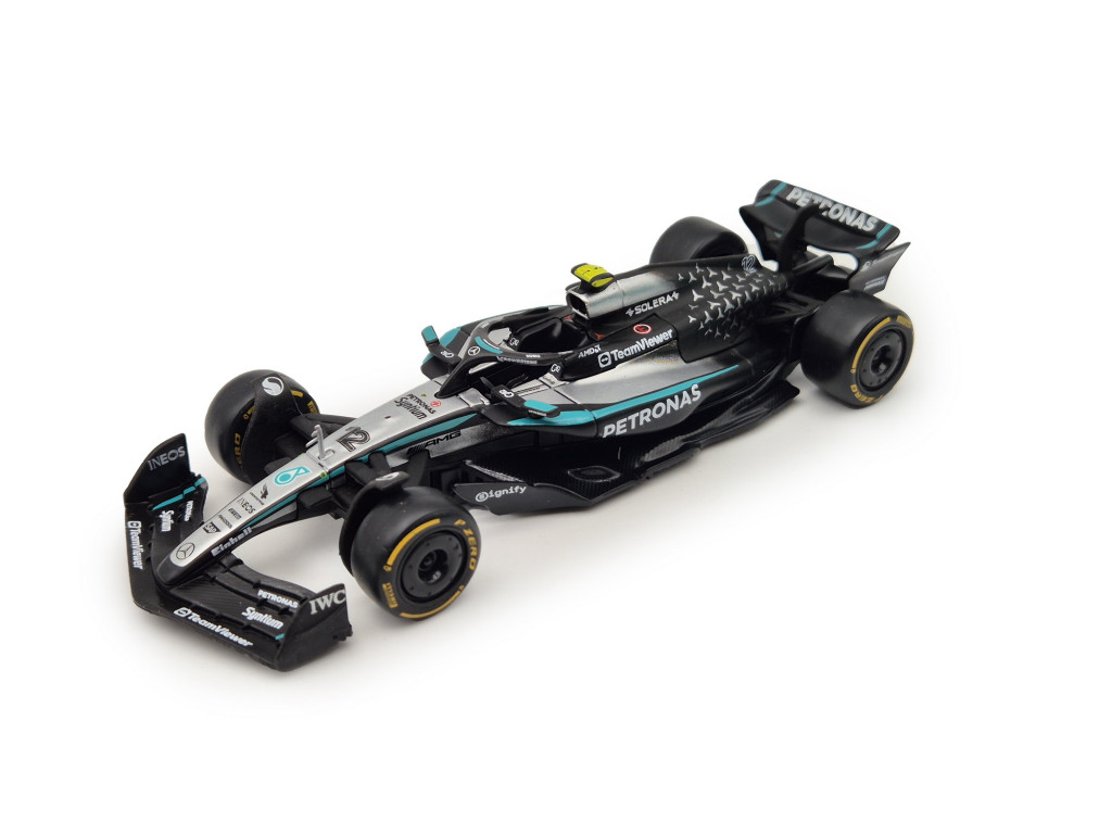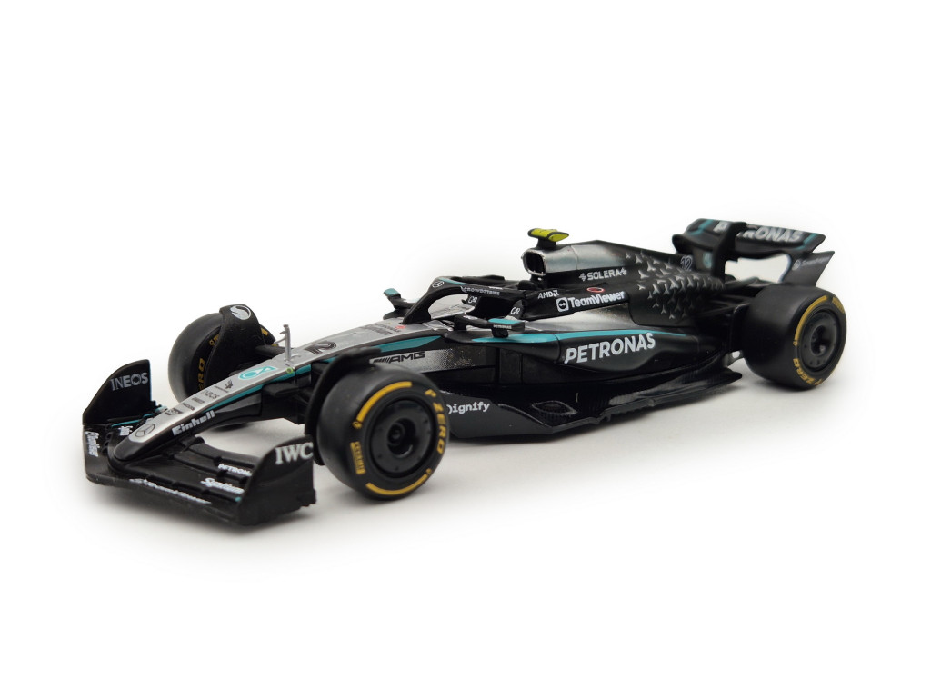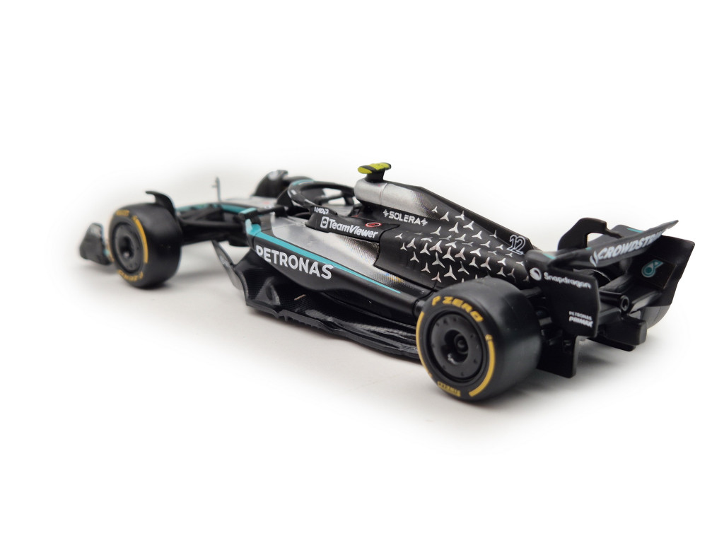 Modelul Bburago la scară 1:43 redă fidel liniile și proporțiile monopostului real. Caroseria detaliată, grafica specifică Mercedes și finisajele atent realizate oferă un aspect realist și elegant. O piesă ideală pentru fanii Formulei 1, colecționari și susținătorii Mercedes și Andrea Kimi Antonelli.
