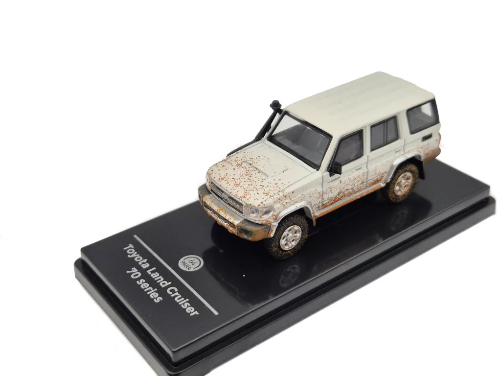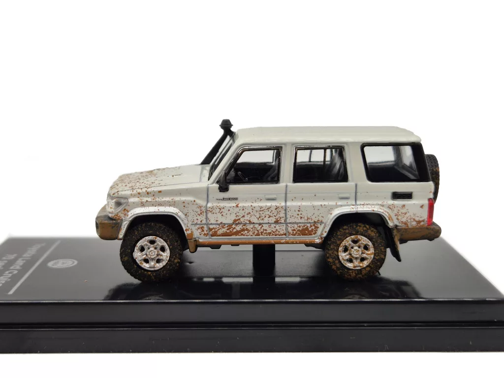 Modelul Paragon Models la scară 1:64 reproduce fidel spiritul mașinii reale. Versiunea cu volan pe stânga (LHD), caroseria robustă și detaliile off-road oferă un aspect autentic. Dimensiunea compactă îl face ușor de expus, dar suficient de expresiv pentru a atrage atenția în orice colecție. O piesă excelentă pentru pasionații de off-road, colecționari și fanii modelelor Toyota clasice.