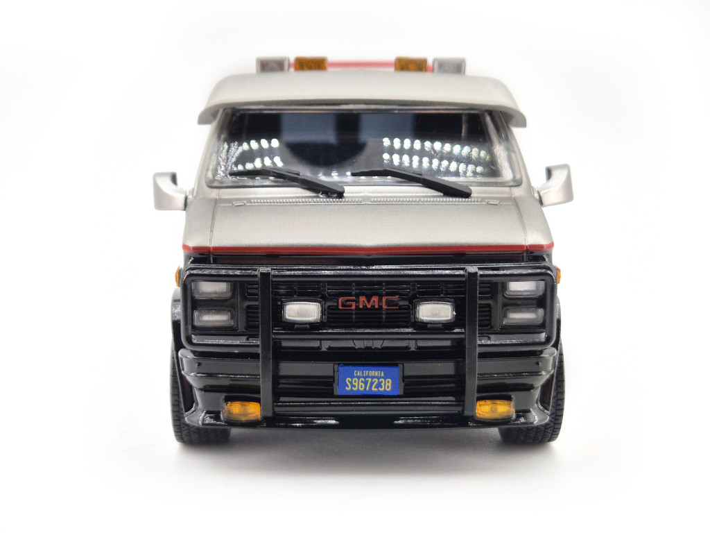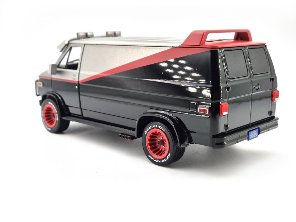 În realitate, GMC Vandura făcea parte din gama utilitară a General Motors, cunoscută pentru construcția robustă și motoarele V8 puternice. În serial însă, vehiculul a devenit un simbol al libertății și al spiritului de echipă. Spoilerul de pe plafon, jantele late și proporțiile impunătoare îi oferă o prezență inconfundabilă.