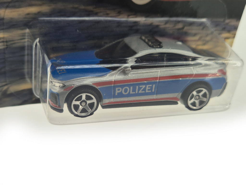 Versiune blister, card lung. Mașinuță, nu se deschide! Produs nou! BMW i4 în versiune de poliție reprezintă întâlnirea dintre mobilitatea electrică modernă și vehiculele de serviciu. Designul curat, sportiv și caracterul futurist îl fac să iasă imediat în evidență. Propulsia electrică silențioasă, dar puternică, marchează o nouă eră în flotele de poliție. Grafica specifică îi oferă un aspect distinctiv. Modelul Matchbox 1:64 este o piesă modernă și interesantă pentru colecționari.